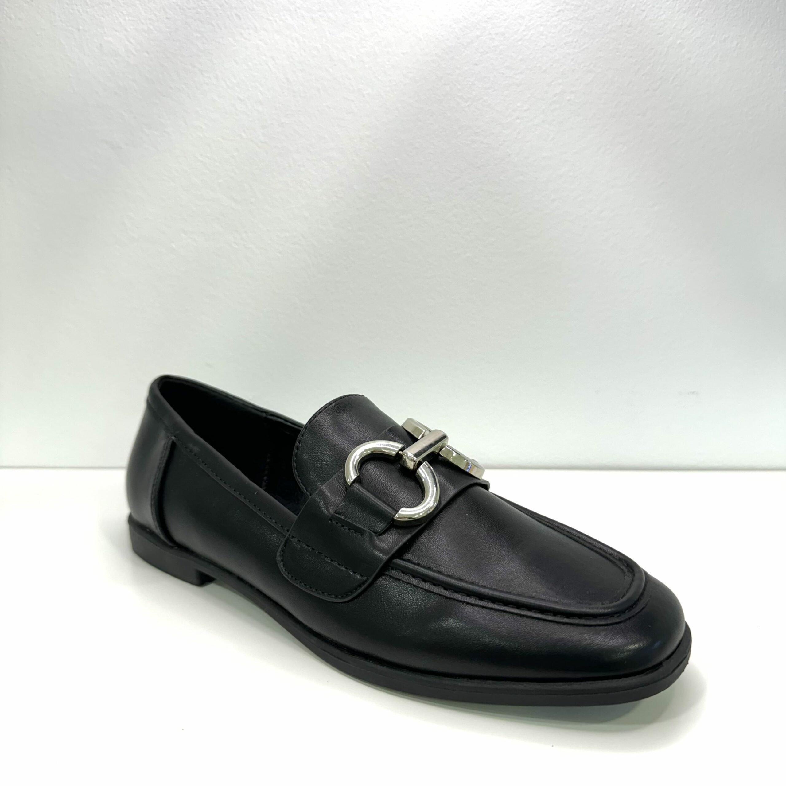 Mocasín plano. Detalle de hebilla metálica en la parte delantera. Acabado en punta redonda. Altura de la suela 1,5 cm.