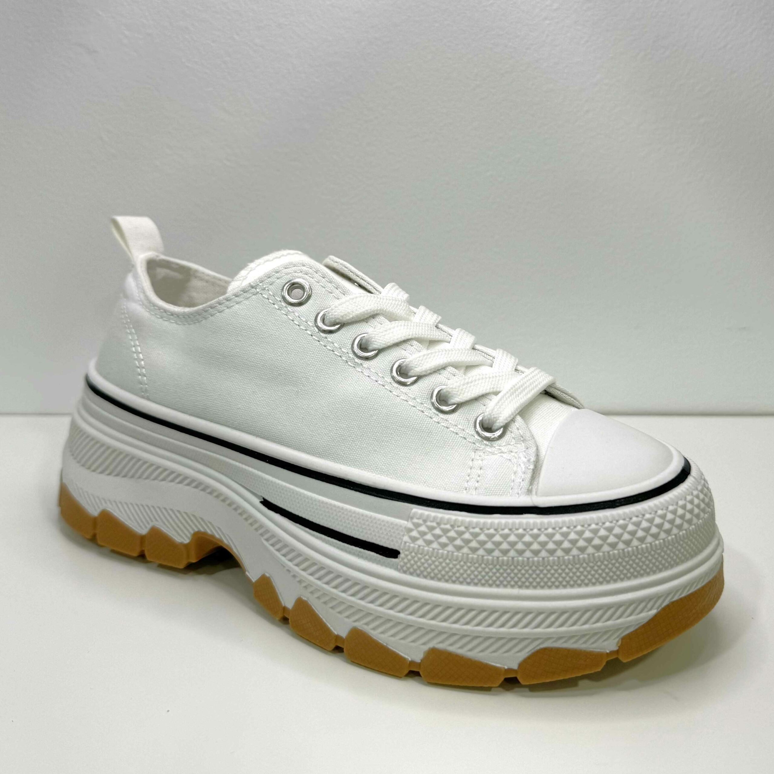 Zapatilla con suela dentada y cierre mediante cordones de 6 pasadas. Altura de suela 5,5cm.