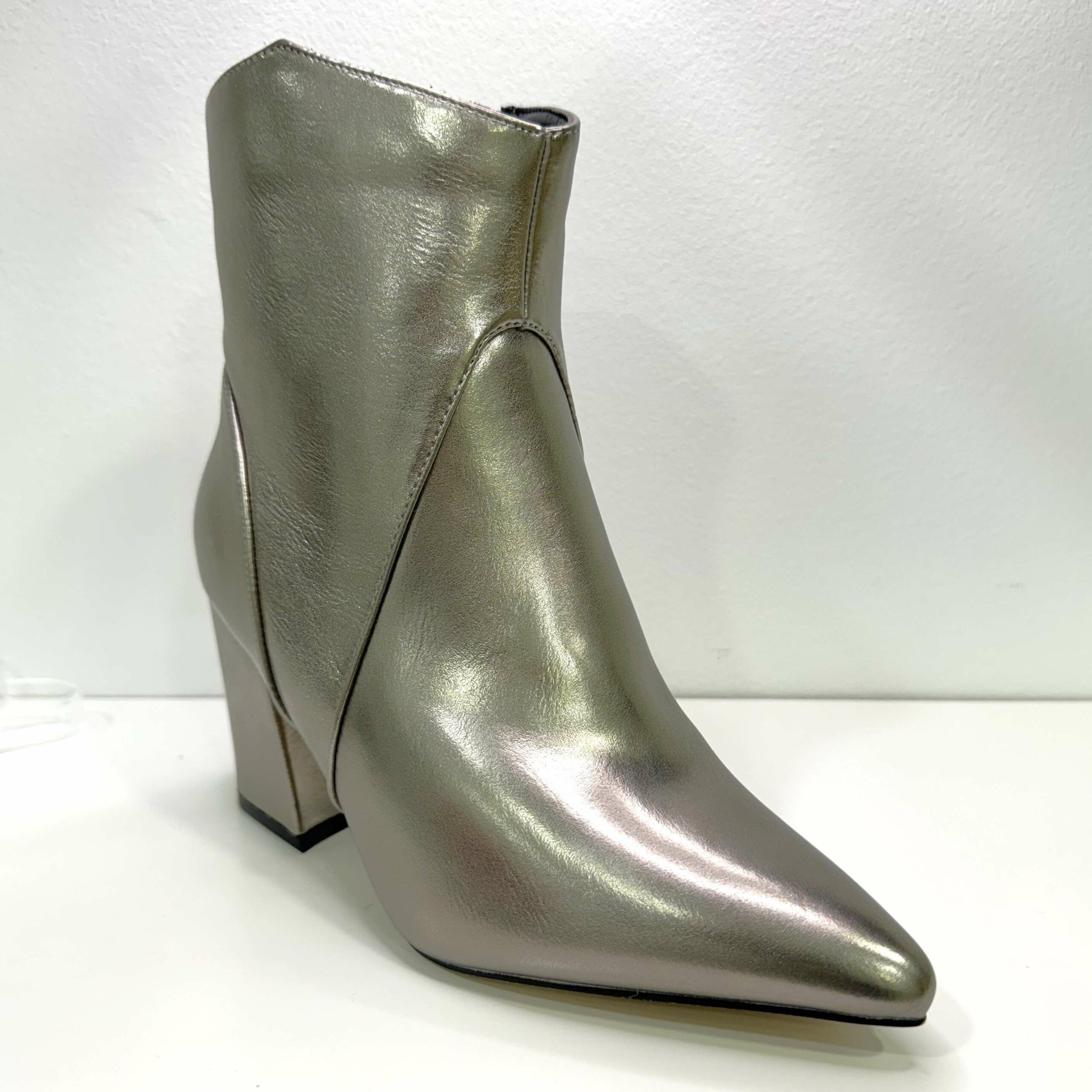 Botín de tacón medio con la cremallera en la parte lateral interior. Acabado en punta. Altura de tacón 7,5cm. Altura de caña 13cm